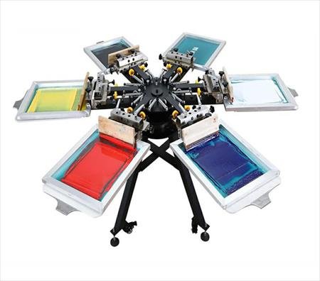 Pour chaque couleur un nouveau cadre, un nouveau passage. L’utilisation d’un carrousel de sérigraphie permet l’impression de petites série et moyen série de manière efficace et rapide.